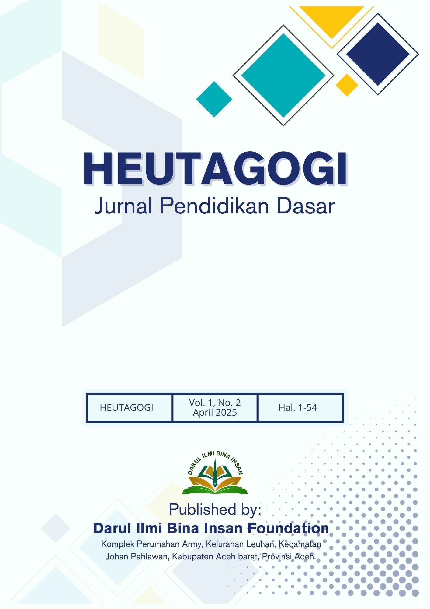 Vol. 1 No. 1 (2025)HEUTAGOGI: Jurnal Pendidikan Dasar dengan bangga telah menerbitkan Volume 1 Nomor 1 (April 2025) yang memuat beragam karya hasil penelitian dari para peneliti, dosen, dan mahasiswa dari berbagai daerah di Indonesia. Edisi ini merepresentasikan semangat kolaboratif dalam karya ilmiah sebagai wujud kecintaan terhadap penelitian dan publikasi.